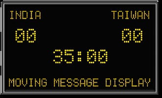 • Display Matrix (Pixels): (Team Names : 30 x 7 = 210 Pixels each,Scrolling Message: 90 x 7 = 630 Pixels,Team Score: 10 x 7 = 70Pixels each,Game Time: 20 x 7 = 140 pixels + 2 Pixels for blinker)